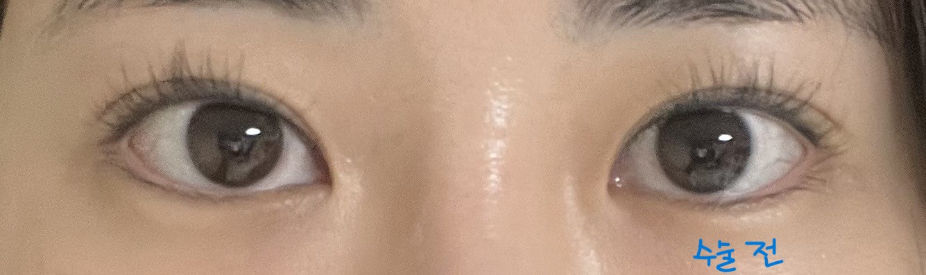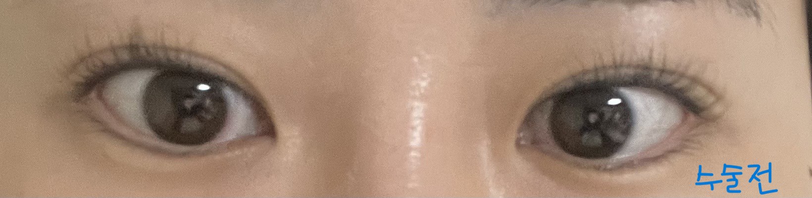 재수술 전 눈은 기존 쌍꺼풀이 있었으나, 여러겹으로 생겨 매몰법으로 찝은 상태였고