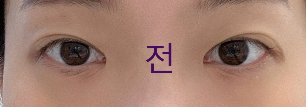 원래 쌍커풀이 뒤쪽으로 얇게 있었어서 앞부분만 맞춰서 라인을 잡으려고 했는데