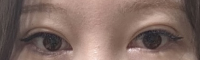 위 사진이 수술전 (오른쪽 눈꺼풀이 다 풀려버린 상황) 이마로 눈뜨는 상태 눈뜨는힘 약함, 밑에사진이 수술후 입니다!