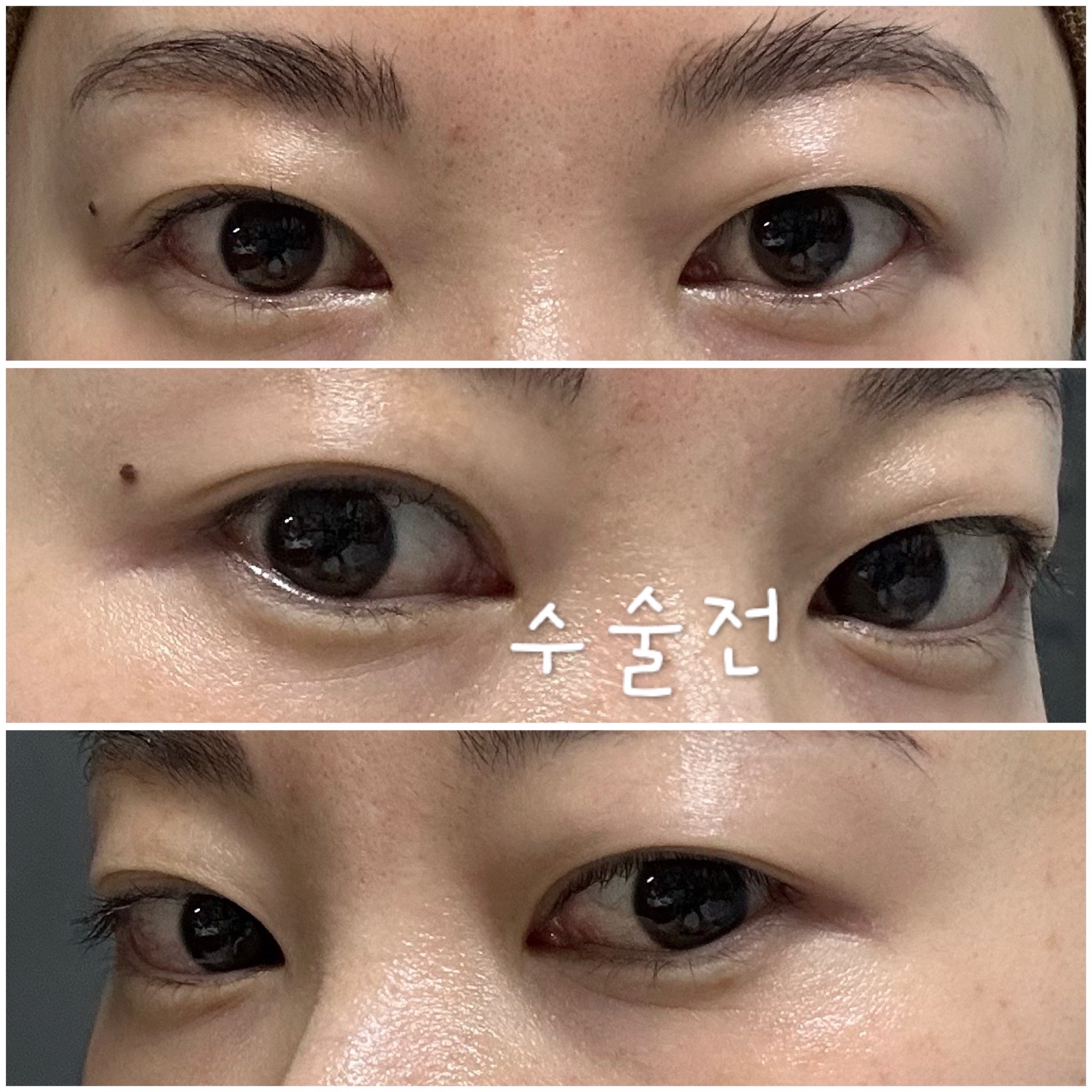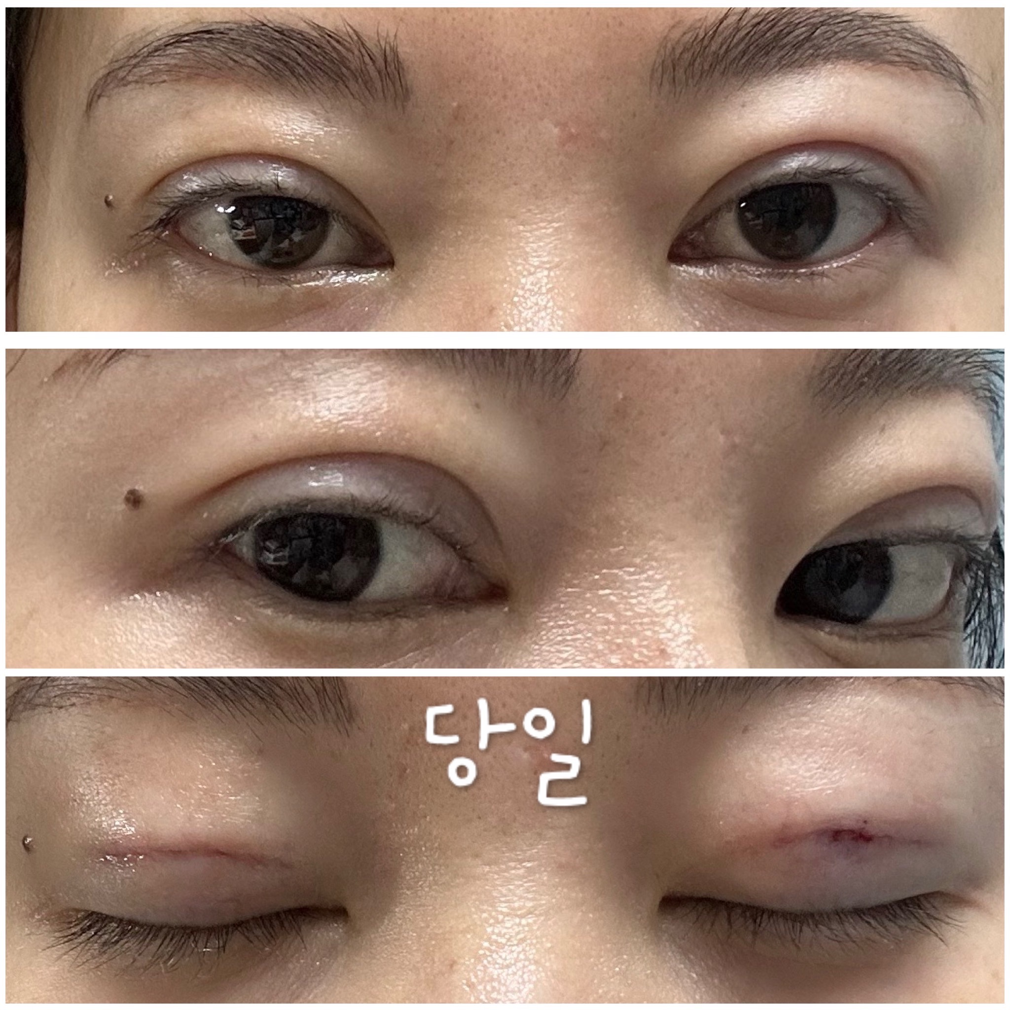 수술실까지 렌즈를 모르고 끼고있었는데 선생님들께서 도와주셔서 무사히? 렌즈를 빼고 수술이 시작되었습니다. 수술시간은 15분 정도로 짧았고 원장님께서 수술이 잘 되었는지 한번 더 확인해주신 후 마취가 깰때까지 쉬고 집에 지하철 타고 왔습니다. 택시 탈 정도로 힘들진 않았어요(평소에 렌즈를 껴서 모자와 안경 미리 챙김) 막 아프진 않았고 살짝 당기는 느낌이었습니다. 돌출눈이라 그런지 눈의 붓기가 잘 가라앉진 않아서 사람들이 알아보긴 했어요 ㅋㅋㅋ 2주정도 좀 부어있다가 서서히 빠졌습니다. 3일차 때에는 눈머리쪽에 멍이 살짝 보이다가 사라졌어요. 현재는 붓기가 거의 다 빠졌고 잔붓기만 남은 것 같아요. 일단 이마에 힘을 주지 않아도 눈이 떠지고 주름도 잡히지 않고 자연스러워서 굉장히 만족한답니다!!
