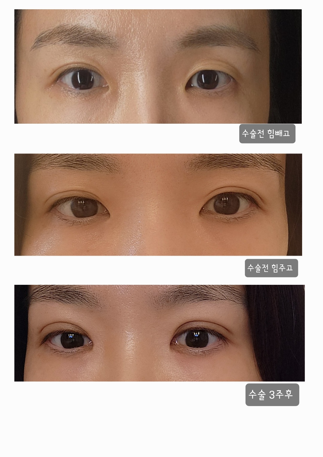 출산을 하고 인라인에서 아웃라인으로 변하더니 점점 풀려가면서 눈뜨기 피로해져서 수술을 결심했습니다.