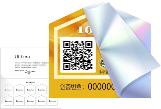 홀로그램 스티커로 울쎄라 정품팁 사용을 확인하세요! 홀로그램 스티커를 한 번 더 떼어내시면 포인트 적립할 수 있는 큐알코드가 나옵니다.