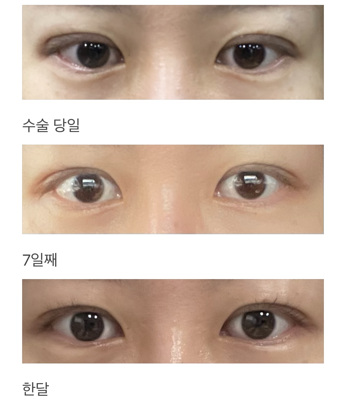 이미지가 크게 변하지 않았으면 좋겠다 라고 상담할때 말씀드리니 기존 쌍꺼풀 라인에서 살짝 위에 라인 잡고 눈매교정도 같이 했어요
