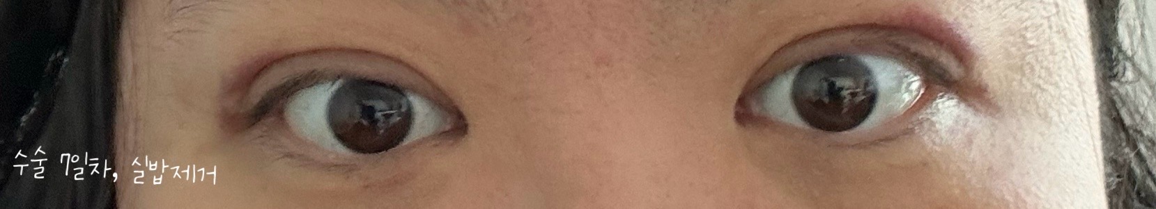 실밥 제거후에 붓기는 남아있어도 또렷한 라인이 수술한티없이